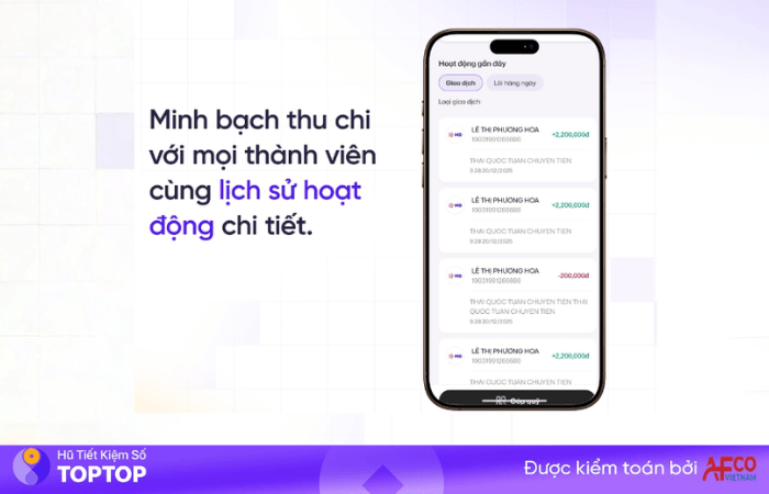 Ví dụ: Một quỹ nhóm có 50 triệu đồng dự kiến dùng cho chuyến đi cuối năm. Thay vì để ngủ đông trong thẻ ATM, số tiền này khi giữ tại TopTop sẽ tự động sinh lãi mỗi ngày. Khoản tiền lời này hoàn toàn có thể giúp cả hội có thêm ngân sách cho nước ngọt, đồ ăn vặt mà không cần đóng góp thêm.