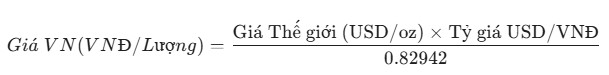 Dựa trên khối lượng chuẩn của 1 Ounce vàng (31.1034768g), chúng ta có phép tính toán học chính xác như sau: