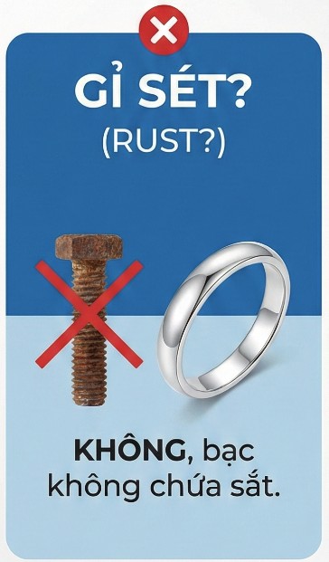 Bạc 925 KHÔNG bị gỉ sét -> Bền bỉ theo thời gian.