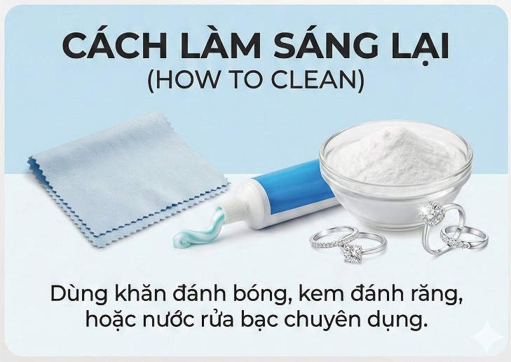 Dùng kem đánh răng: Chà nhẹ lên bề mặt bạc rồi rửa sạch.