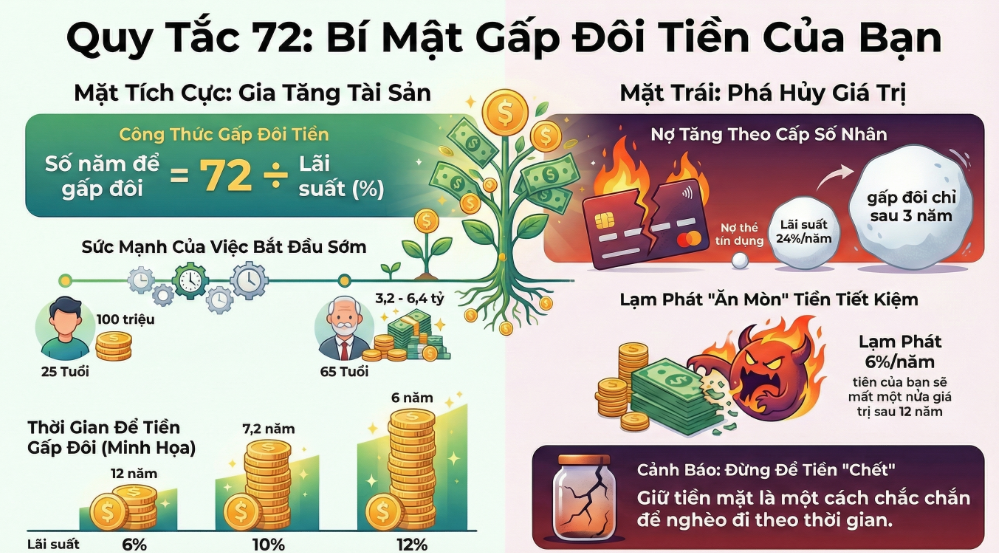 Làm sao để biết bao lâu tiền của bạn sẽ gấp đôi mà không cần máy tính phức tạp? Hãy dùng Quy tắc 72.